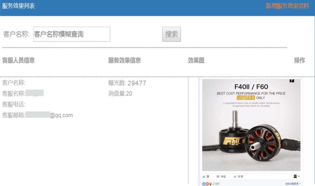 主動精準曝光精選2個品牌產品關鍵詞海外團隊通過企業市場定位條件精準鎖定目標FB用戶群體,將企業業務信息大量分享曝光出去,吸引FB用戶進一步關注了解企業業務,讓產品和品牌更深度傳播,沉淀老客戶,拓展新客戶大量分享
