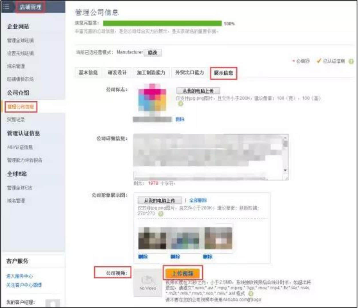 1. 主賬號登錄 My Alibaba—店鋪管理—管理公司信息—展示信息—公司視頻。
