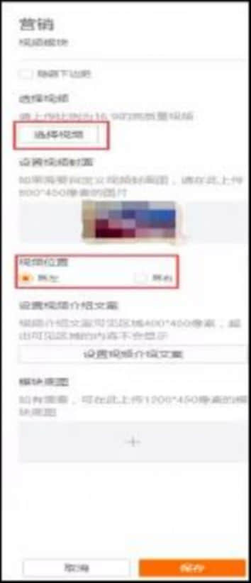 視頻模塊除添加視頻外,還有更多設置項,幫助您完成自定義區的內容填充。