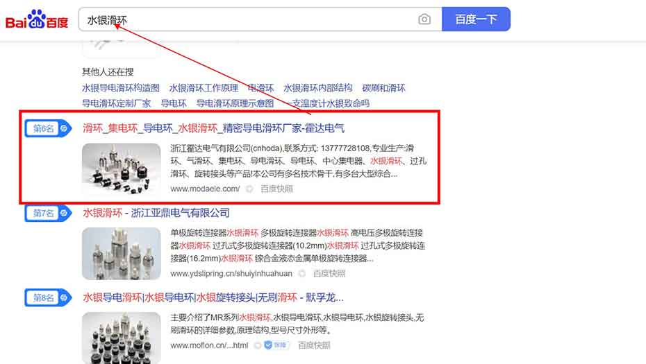 盛世傳媒為霍達提供了滑環相關的關鍵詞的搜索排名服務!